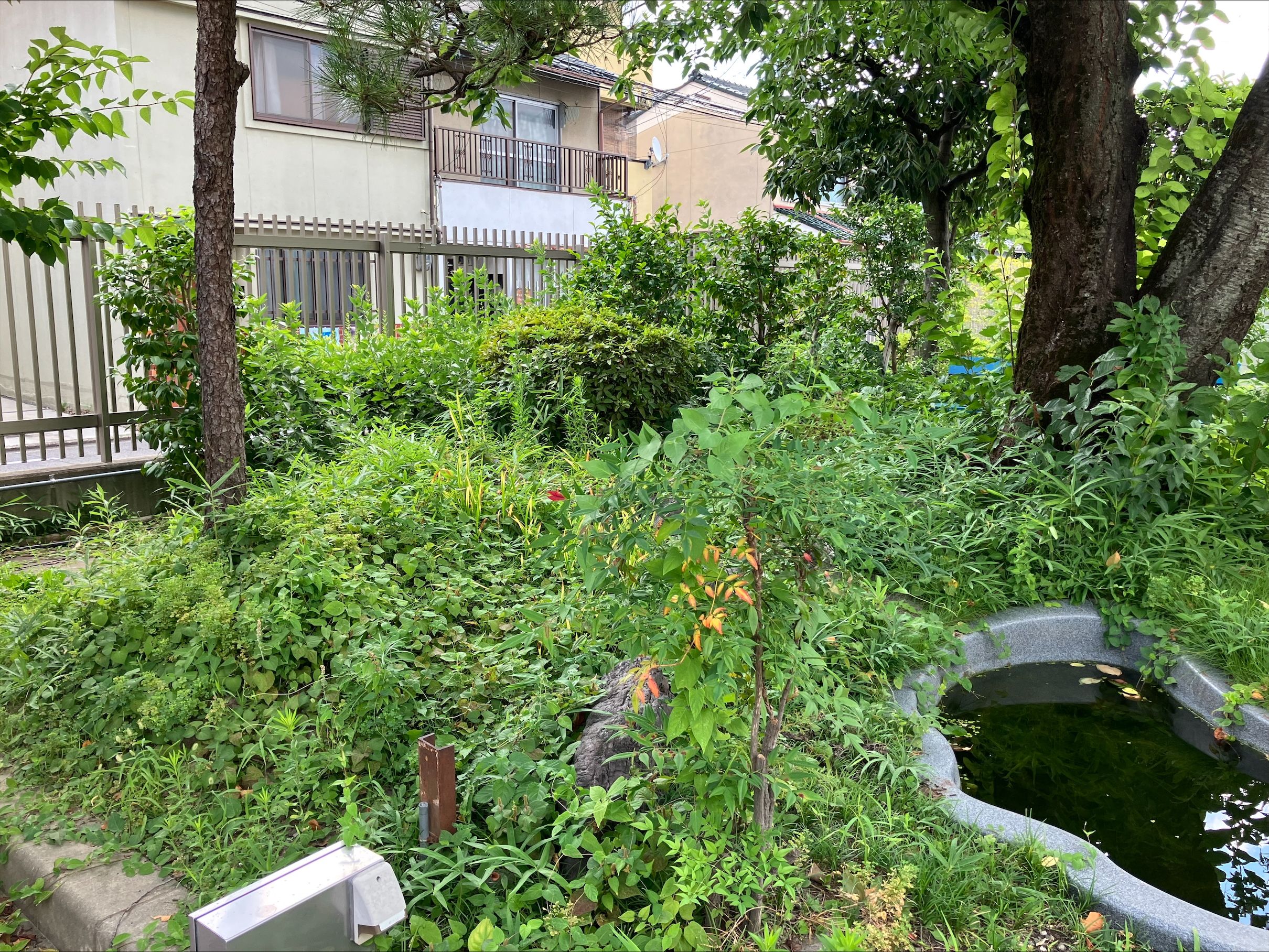 九条工場での一コマです。夏真っ盛りギラギラ太陽に吹き出す汗、強烈な蚊にも負けずに皆でがんばって除草作業をしました。すると、なんと、こんなにもすっきりしました。