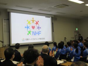 日新ハートフルフレンドのメンバーも、今春で33名となりました。おかげさまで、昨年9月に、めでたく10周年を迎え、11月には、京都・前橋にて記念式典を開催することができました。事業所長、指導員、人事部・前橋製作所はじめ関係部門のみなさんのほか、昨年度から新たに認定されたリーダー、サブリーダーにも企画検討に加わっていただき、メンバーが主役となった、手づくりの素晴らしい式典となりました。メンバー紹介の際のみなさんの表情は、なにか誇らしげで自信や力に満ちあふれており、大変うれしく思いました。また、10周年を機に、ハートフルフレンドのロゴマークや会社案内パンフレットもつくりました。あたたかみのある、人と人が心と手をとり合いながらつながるイメージは、みなさんのこれからの一体感の象徴となればと願っています。